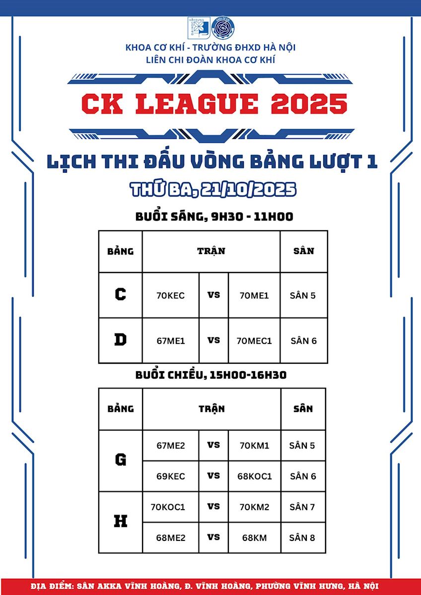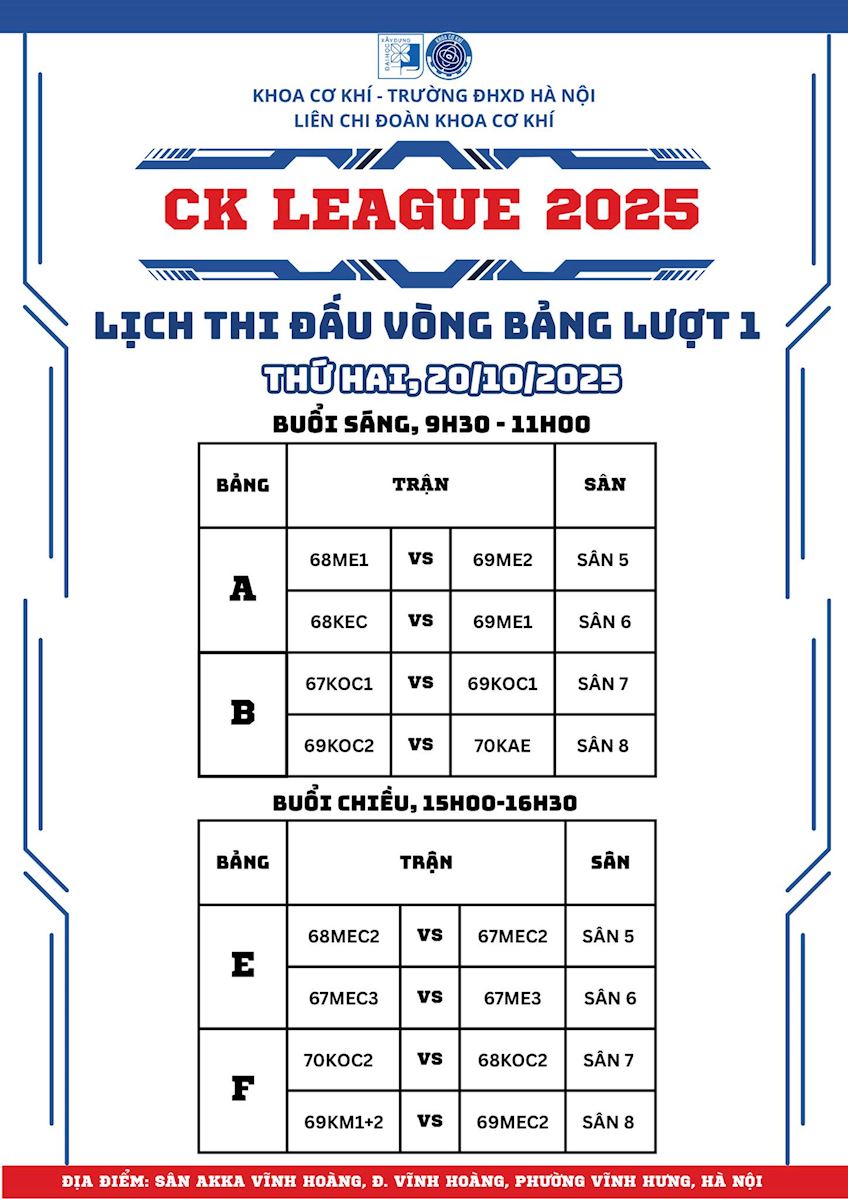 🤝 CK LEAGUE 2025 is more than just a sports playground; it is an occasion for all students of the Faculty of Mechanical Engineering to share joy, team spirit, and strong solidarity within our "Mechanical Engineering Family."
