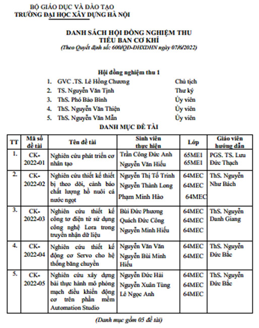 On June 19, 2022, Hanoi University of Civil Engineering (HUCE) successfully organized the university-wide Student Science and Technology Conference. A total of 107 student groups were distributed across 22 specialized councils.
